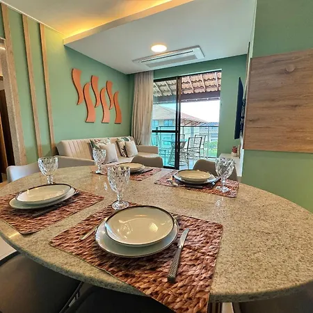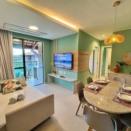 The beachfront Flat 2Qt Beira-Mar Com Vista | Itah Residence C303 - By Anfitriao Legal Porto de Galinhas villa is located 10 minutes' walk from Praia de Muro Alto and provides a swimming pool, ensuring a relaxing stay.